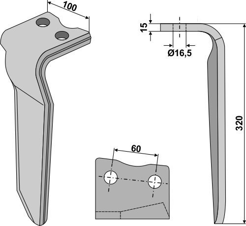 Dent de herse Kuhn/Huard 2500100 droite