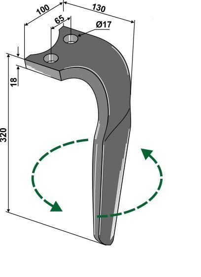 Dent de herse adaptable Kuhn 2 trous gauche