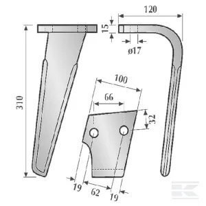 Dent de herse adaptable Kuhn 2 trous gauche