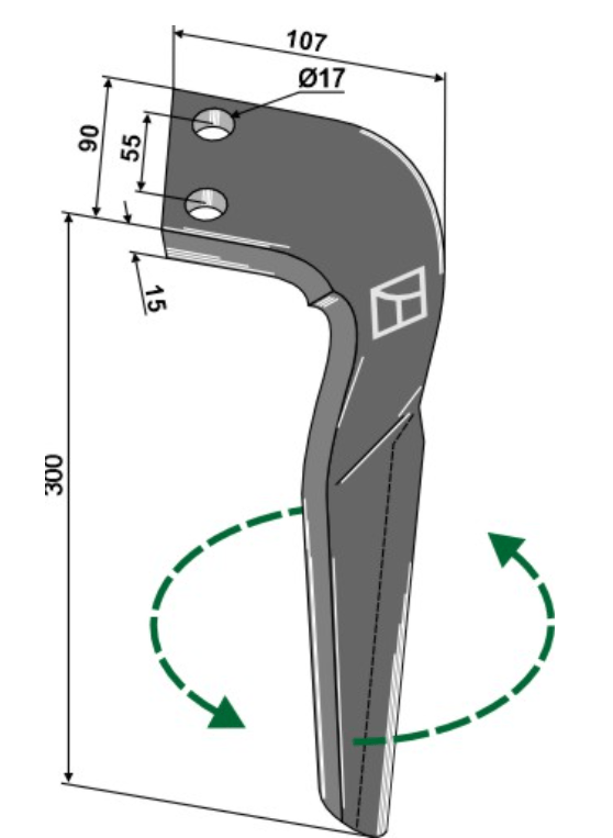 Dent de herse adaptable Kuhn 2 trous gauche